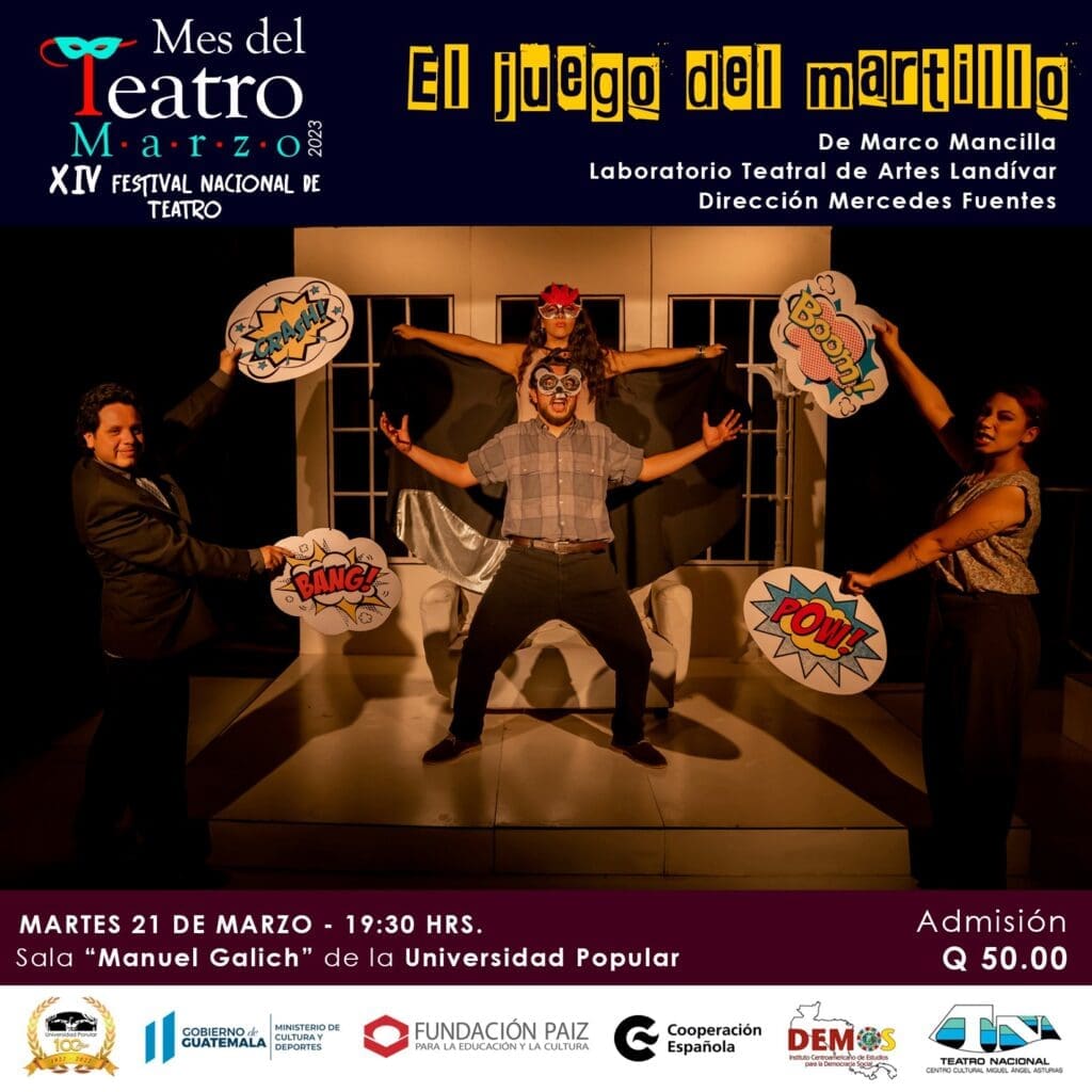 En el marco del Día Internacional del Teatro, conmemorado el 27 de marzo, se realizará la comparsa con la participación de escuelas, academias y compañías teatrales, el sábado 25 de marzo. Tal recorrido comenzará en el Palacio Nacional de la Cultura, pasando por el Paseo de la Sexto con dirección al Centro Cultural Miguel Ángel Asturias (CCMAA). Al llegar, la primera actriz Ana María Bravo leerá el “Manifiesto del Día del Teatro”.