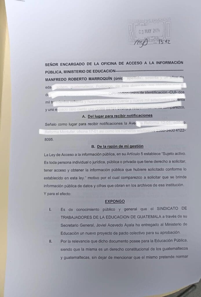 La solicitud, realizada el sábado 4 de mayo de 2024, destaca la importancia de que dicho acuerdo sea transparente, considerando el impacto que tiene en un derecho constitucional de los guatemaltecos: la educación. En la carta enviada al Ministerio de Educación, se hace hincapié en que el pacto colectivo pretende regular la educación, subrayando la necesidad de que este tipo de acuerdos sean accesibles para todos.