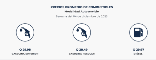Al contrastar esta información con los promedios proporcionados por el Ministerio de Energía y Minas (MEM) para la semana del 4 de diciembre, se confirma una tendencia a la baja. Según el informe más reciente del MEM, la gasolina regular tenía un precio promedio de Q28.49, la gasolina superior se cotizaba en Q29.98 y el diésel en Q29.97.