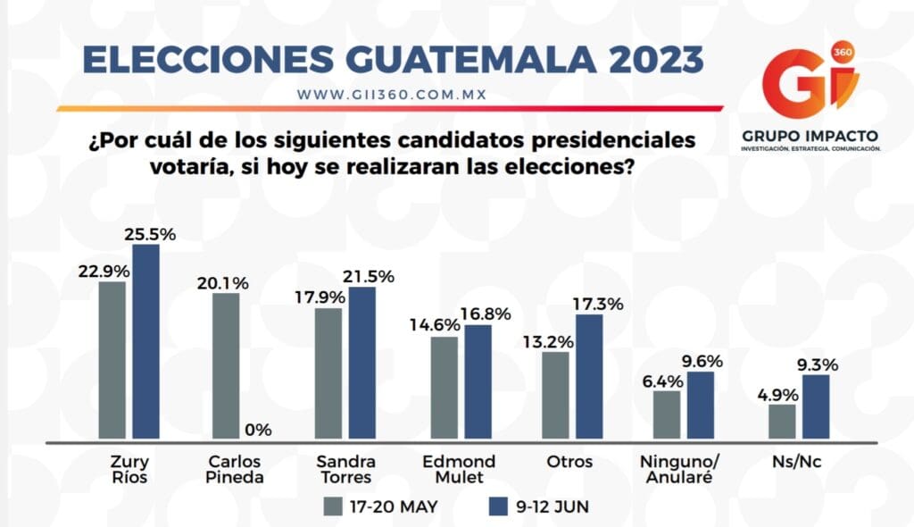 - Seguida por Sandra Torres con 21.5%, Edmond Mulet 16.8%,