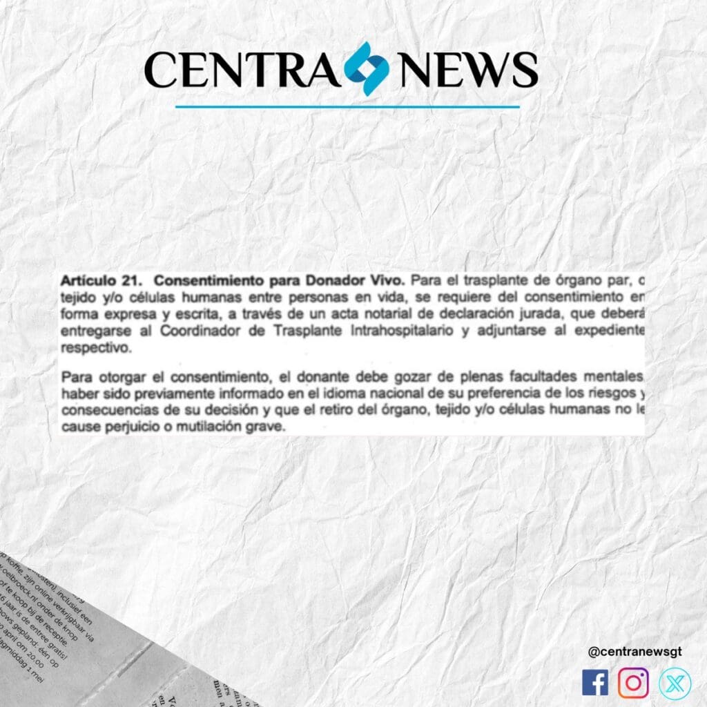 El día martes 2 de abril, marca un día importante en la salud pública guatemalteca con la implementación del Decreto 5-2024, que permite al país recibir órganos, tejidos y células del extranjero para trasplantes, según lo aprobado por el Congreso a fines de febrero y publicado recientemente en el diario oficial.
